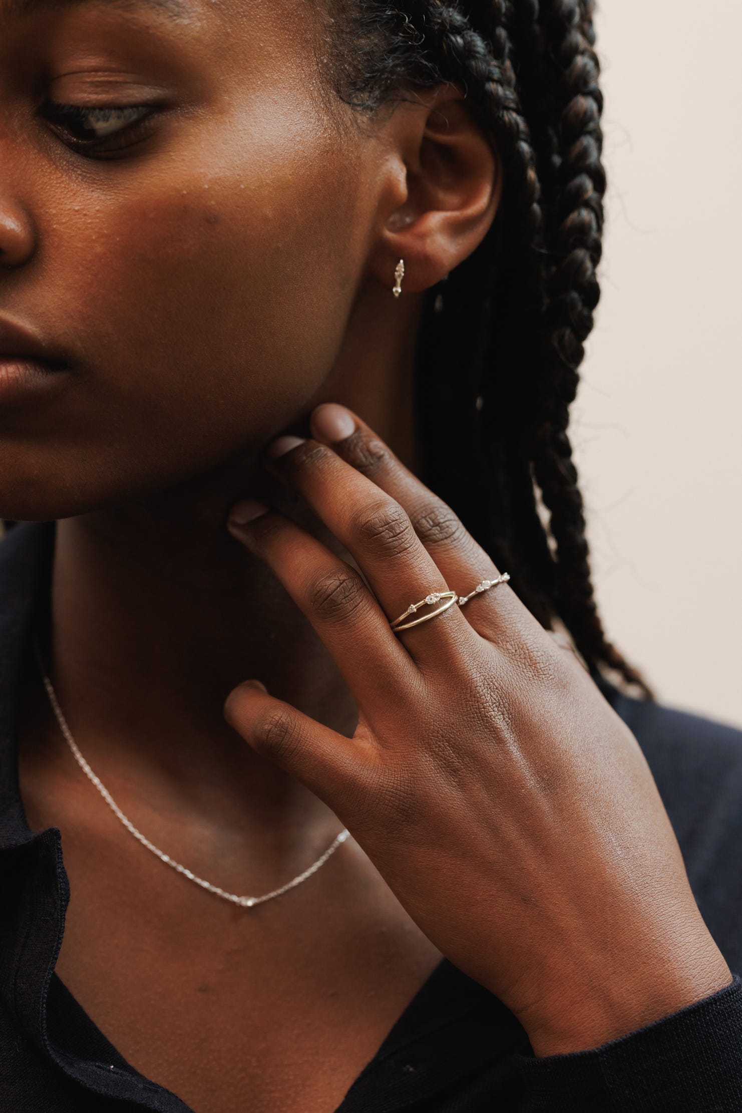 This dainty white sapphire style from GLDN looks so elegant and chic. She’ll love wearing it (or them) every day.