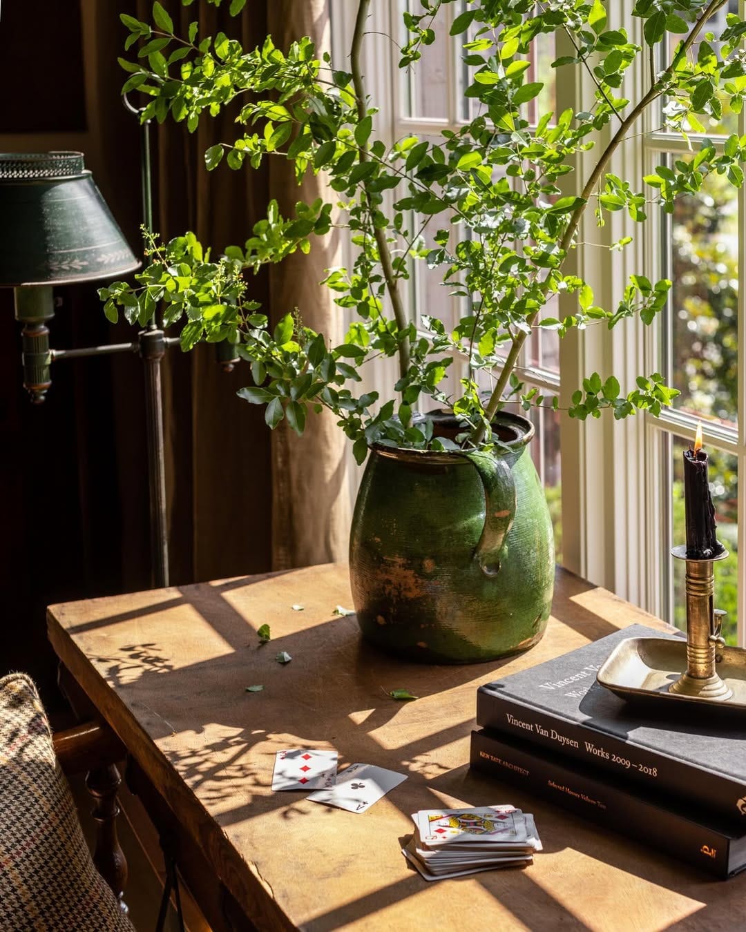 This could mean plants or flowers. Or, it could be a leather chair with wood accents. Any item, really, that subtly evokes nature and the outdoors.