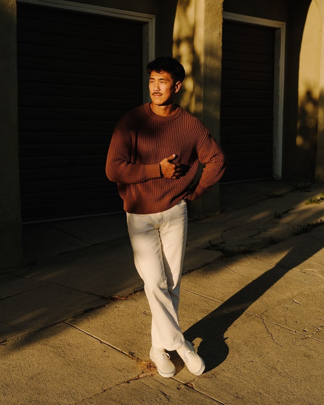 What makes this a great date outfit: There’s something about wearing white or off-white pants that says, “I’m a grown man who won’t spill ketchup on myself.”