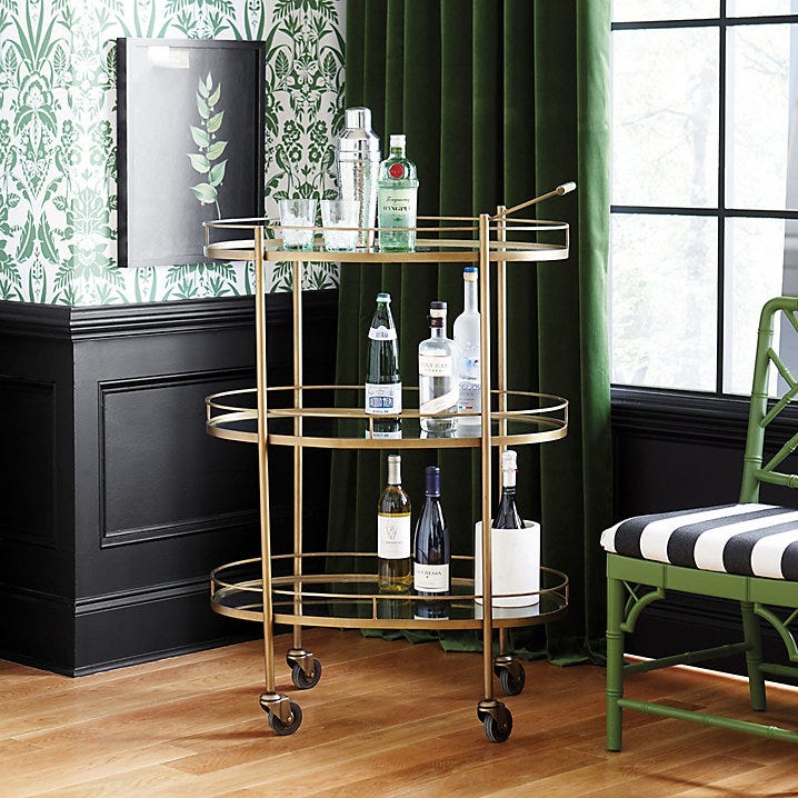 A well-stocked kitchen and bar cart means easy-to-eat snacks as well as some tasty surprises.